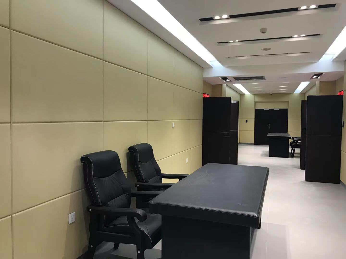 紀(jì)委監(jiān)察委審訊室還需要進(jìn)行消音建設(shè),廣州星美生產(chǎn)的防撞軟包就一次滿足了防撞與消音需求,產(chǎn)品不僅防撞系數(shù)高達(dá)99.5%。消音效果也是超級(jí)顯著,能夠在防撞的同時(shí)創(chuàng)造一個(gè)安靜的環(huán)境,保證錄音質(zhì)量??梢源钆淠举|(zhì)吸音板做墻面的方案。