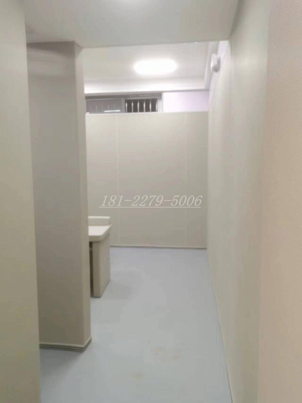 每間房間必須有獨立的衛生間,所有馬桶及洗手盆必須軟包處理,并安裝隱蔽攝像頭。辦案區室內建設應有吸聲功能,2.4米以上部分安裝槽木吸音板,以凈化音質,達到錄音清晰的目的,辦案區以外的過道或醫療室也要在墻面做防撞軟包處理,地面也要求做塑膠地板。