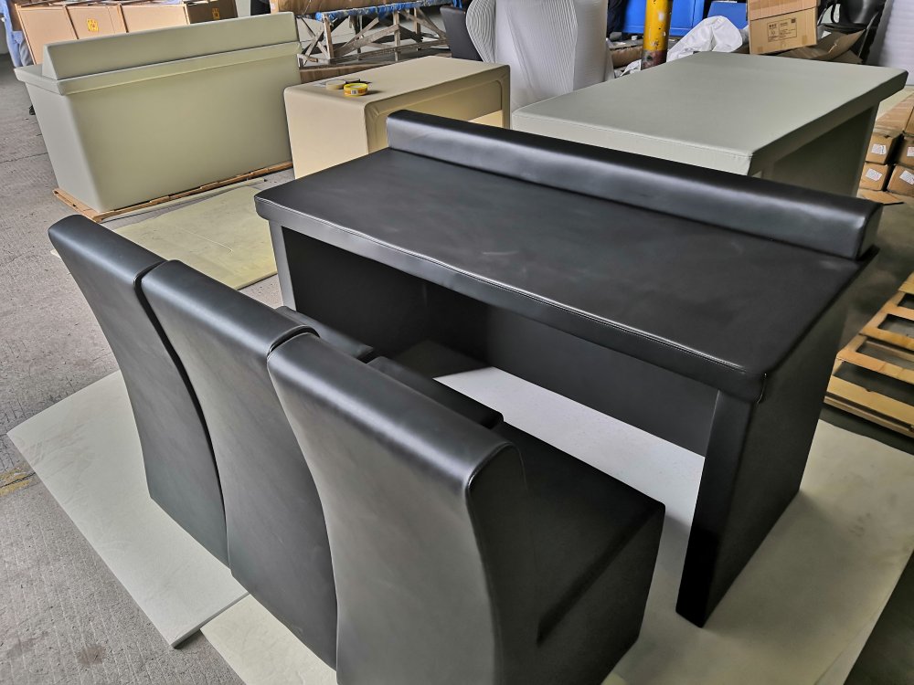 5、審訊桌采用長方形桌體,桌內預留筆記本電腦及打印機電源及報警系統(tǒng),并采用隱蔽式安裝方式。
