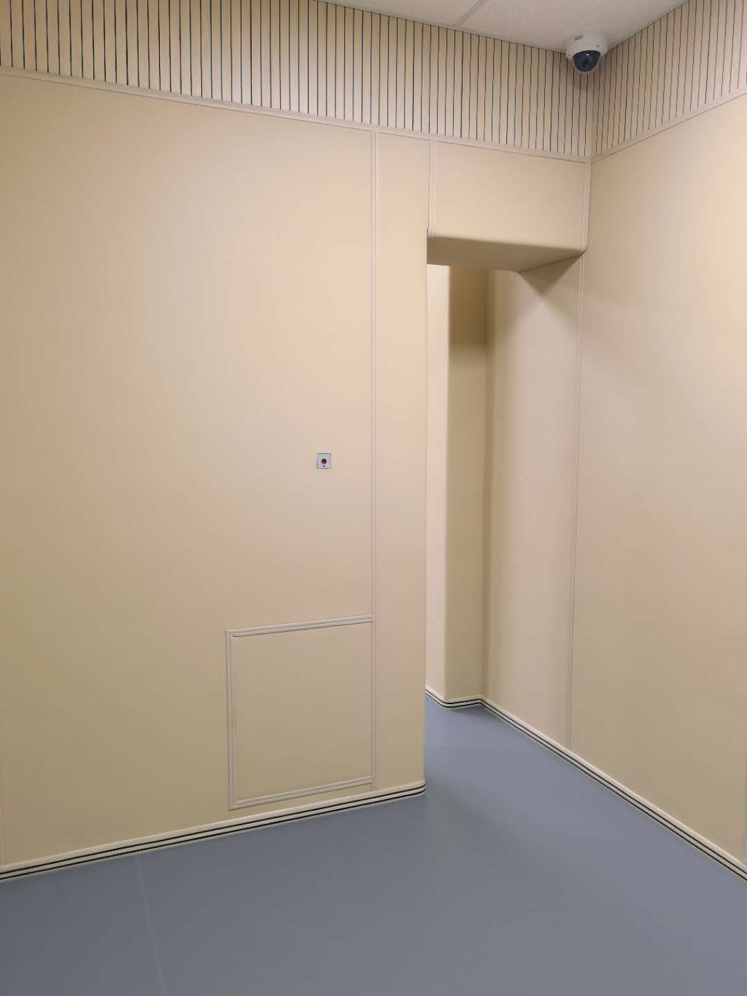 審訊室墻面、審訊室走廊、審訊室衛生間;審訊室防撞軟包材料具有優良的防撞效果能有效的防止撞擊墻面、墻角撞擊帶來的傷害,防止犯人撞傷;其實審訊室防撞軟包墻面板材具有良好的防撞效果能防止噪音干擾辦案及房間回音干擾錄音設備的錄音。主要生成:防撞軟包,審訊室墻面軟包,納米發泡棉防撞軟包,聚乙烯防撞軟包,談話室防撞軟包,防撞桌椅,防撞馬桶,防撞洗手臺等防撞材料。廣州星美建材可設計,歡迎來電咨詢或來廠考察。